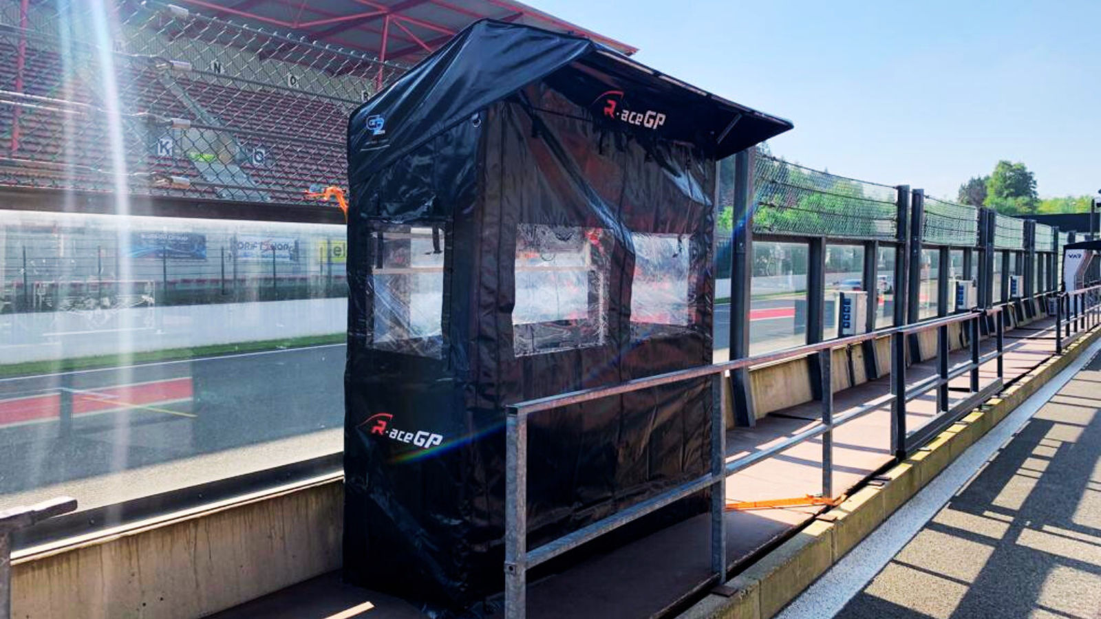 Weather protection without eating pit lane space. Shelter where you need it, not where you don’t.