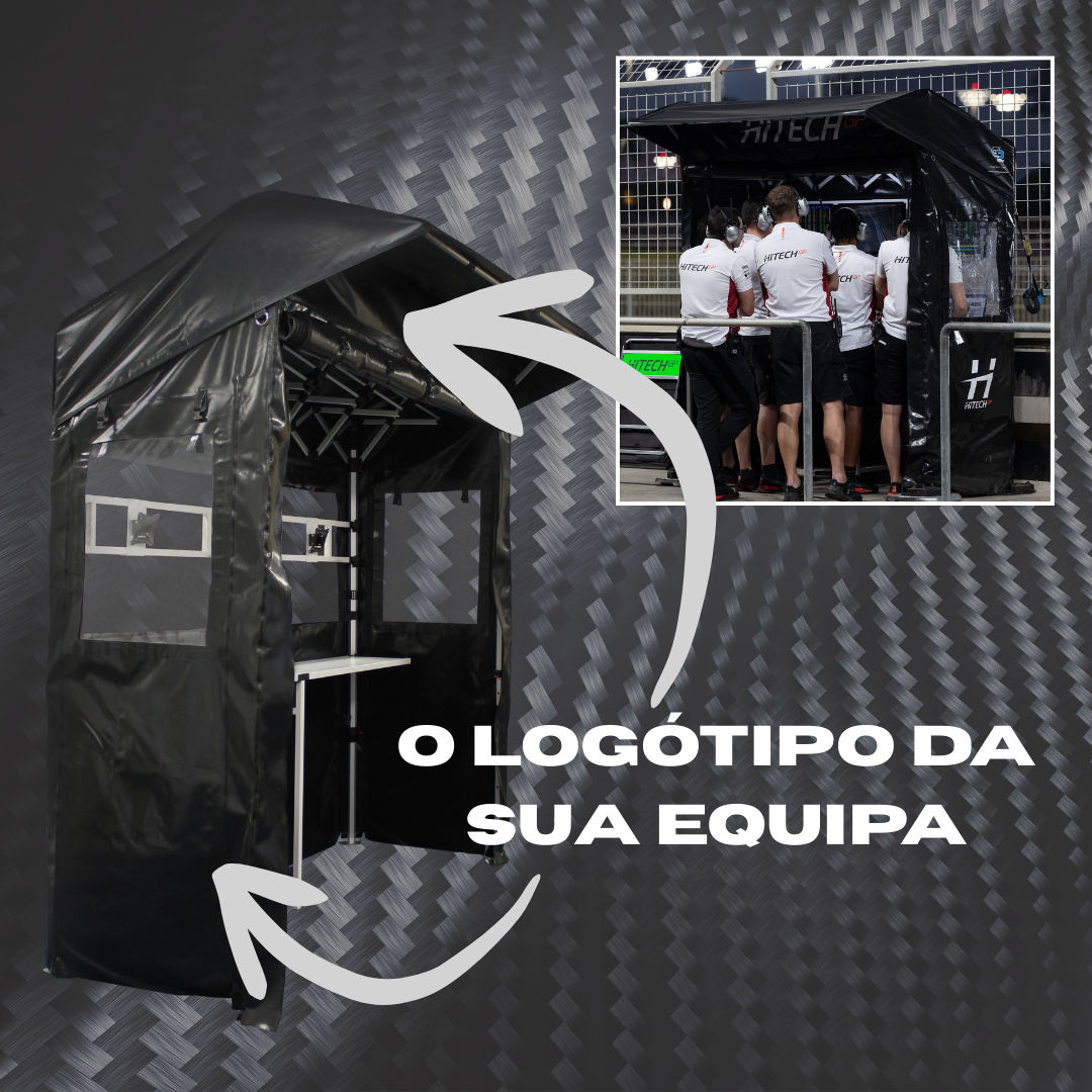 Represente a sua equipa de forma profissional na pit lane com painéis Pit Perch personalizados. Os logótipos e informações principais podem ser aplicados nos painéis laterais e acima da porta, assegurando visibilidade total para câmaras de TV, oficiais e membros da equipa.